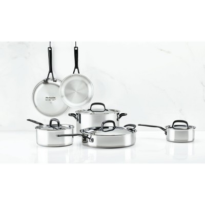 KitchenAid Stainless Steel Cookware Pots and Pans Set, 10 Piece, Brushed Silver $189 99 FREE Shipping by Amazon Usually ships within 1 to 2 weeks. KitchenAid Cookware SS 10pc Candy Apple 20 $129 99 Get it Tue, Nov 9 - Tue, Nov 16 $38.28 shipping KitchenAid 12-Piece Non-Stick Pour & Strain Aluminum Non Stick Cookware Set Dishwasher Induction Safe 10