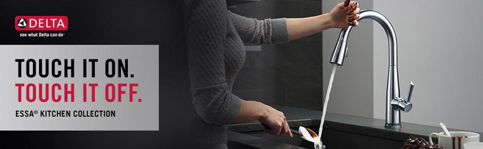 A simple touch anywhere on the spout or kitchen faucet handle with your wrist or forearm activates the flow of water at the temperature where your faucet ...Mar 1, 2015 · Uploaded by Delta Faucet