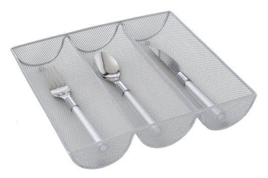Mesh Silverware Drawer Organizer | Williams Sonoma Mesh Silverware Drawer Organizer. Be the first to Write a Review Q & A. Your kitchen drawers can become quite disorganized, but not for long. This mesh steel drawer organizer fits all your standard flatware neatly in its own place and still has room for larger items such as serving spoons, spatulas...