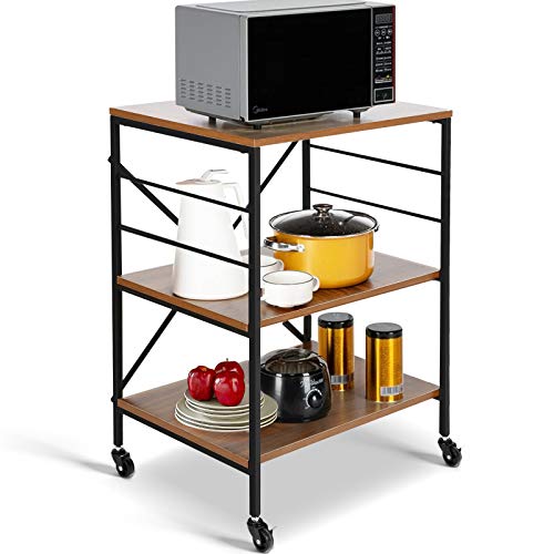 Topfurny Kitchen Baker's Rack, Microwave Cart, 3 Tier Utility Kitchen Serving Cart with Wheels, Microwave Oven Stand with Storage, Coffee Station for ...