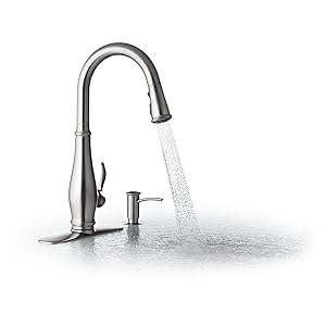 KOHLER Cruette Pulldown Kitchen Faucet - The Home Depot Canada The graceful elegance of the Cruette faucet is ideal for traditional kitchens. Its high-arch spout effortlessly clears the largest pots, and a pull-down sprayhead allows you to target the water where you need it for easy prep and cleanup. Sweep spray creates a wide, forceful blade of water for superior cleaning. Kohler's new docking system, DockNetik, secures the pull-down sprayhead to the ...