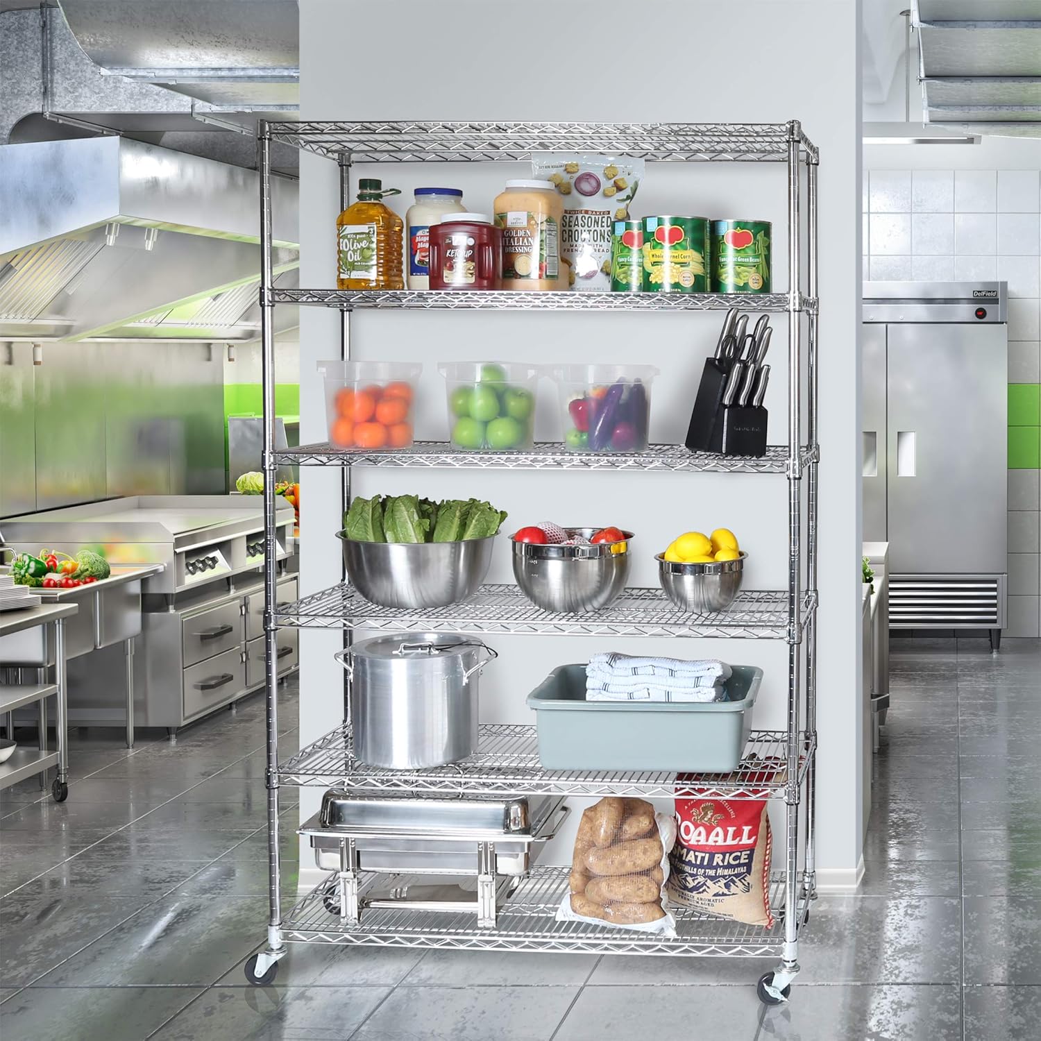 Seville Classics UltraDurable Commercial-Grade 5-Tier NSF-Certified Wire Shelving with Wheels, 60" W x 18" D, Plated Steel