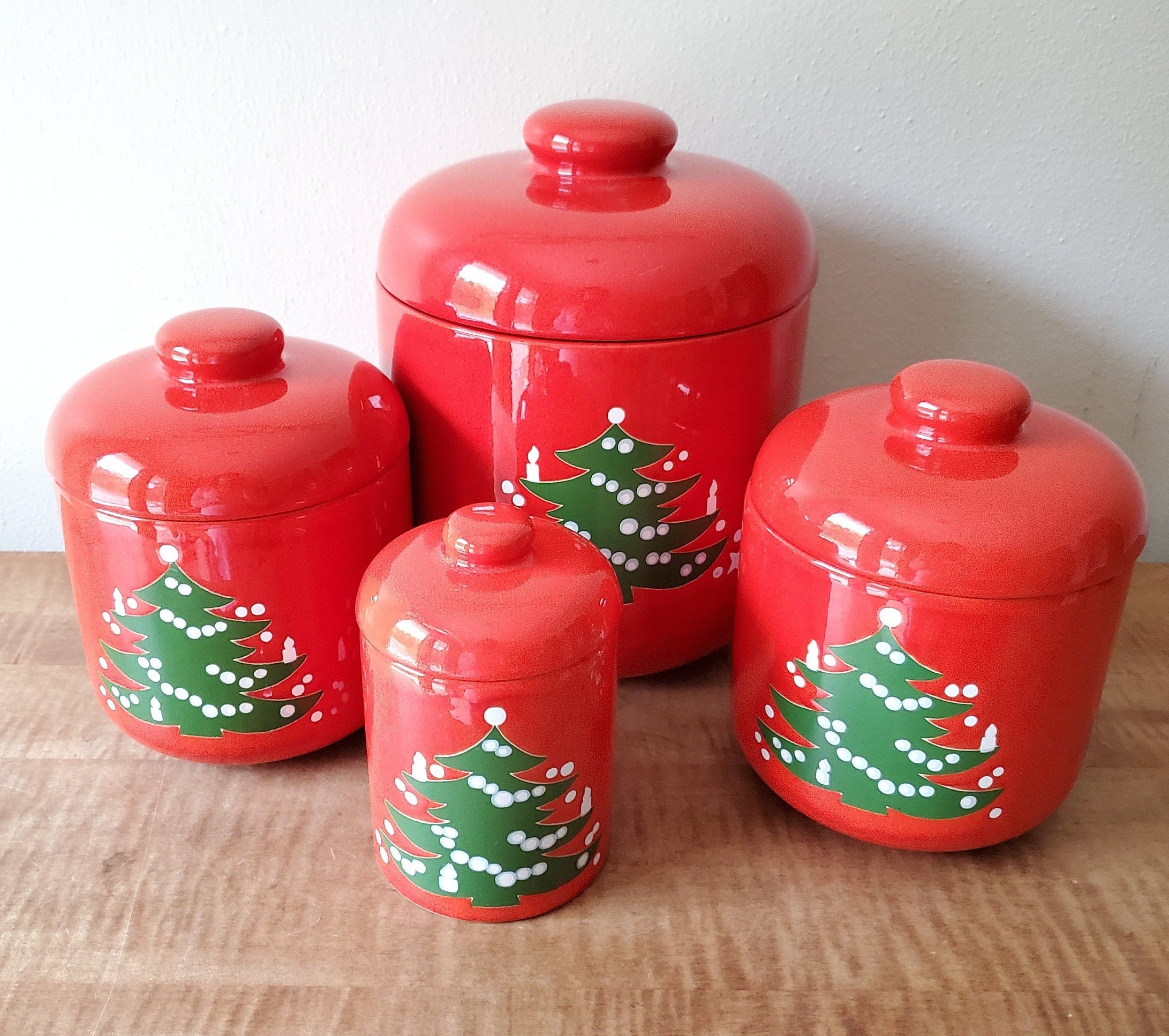 Red Ceramic Kitchen Canister Set - Etsy Red Ceramic Kitchen Canister Set $64.99 Low in stock Add to cart Selling fast! Only 7 left, and 4 people have it in their carts. Highlights Handmade Materials: Ceramic Description Hand painted ceramic canister set, glazed inside and outside. Canister sizes are random each order. Canister Measure Approx. (Including Lid) Small- 7.5"H x4.5"W