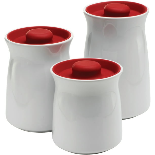 Kitchen Canisters - Food Storage - The Home Depot Canister sets are a convenient and stylish way to organize everyday items for easy access. These storage sets add order to any space whether you use them in your kitchen, craft room, bathroom or garage. Choosing a Canister Set Consider the following tips … Red Kitchen Canisters - Etsy Red Ceramic Kitchen Canister Set HomeDecorCeramics (231) $64.99 Vintage 1930's 40's Nesting Set Metal Kitchen Canisters w/ Red Bakelite Knobs Depression Art Deco Kitchenware Red & White Kitchenware vintagerambler (1,111) $19.95 Retro Ladybug Tin Kitchen Canisters- Set of Four ShopPilgrim (555) $50.00 Red Canister Set | Etsy Check out our red canister set selection for the very best in unique or custom, handmade pieces from our canister sets shops. Some items qualify for FREE ... Amazon.com: red kitchen canisters sets MiXPRESSO 3 Piece Red Canisters Sets For The Kitchen, Kitchen Jars With See Through Window | Airtight Coffee Container, Tea Organizer, And Sugar Canister, Kitchen Canisters Set of 3. 4.6 out of 5 stars. 845. $21.99. $21. . 99. Get it as soon as Fri, Feb 25. FREE Shipping on orders over $25 shipped by Amazon.