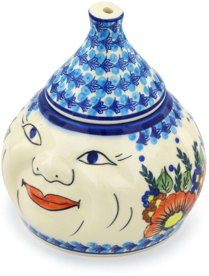 Blue Rose Polish Pottery | Carnival Garlic Keeper A collector of dishes and pottery over the years - she believed the beauty, function and value of the stoneware made in Boleslaweic, Poland was unsurpassed. Her goal, to share her love of Polish Pottery with customers all over the world and offer a broad assortment of items and color combinations to complement any décor, complete any cook's kitchen, and dress every table whatever the function!