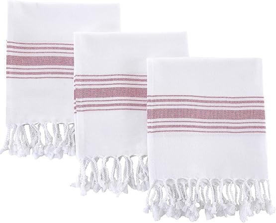 Turkish Hand Towel Set (Pack of 3) Boho Kitchen Towels, Decorative Farmhouse Towels for Bathroom, Fringe Tea Dish Cloth Set, Quick Dry and Highly ...
