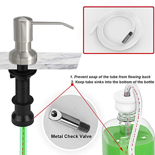JiaHaoJia GAGALIFE Built in Counter Soap Dispenser (Brushed Nickel) for Kitchen Sink and Extension Tube Kit, Anti-Leakage Upgrade with 40