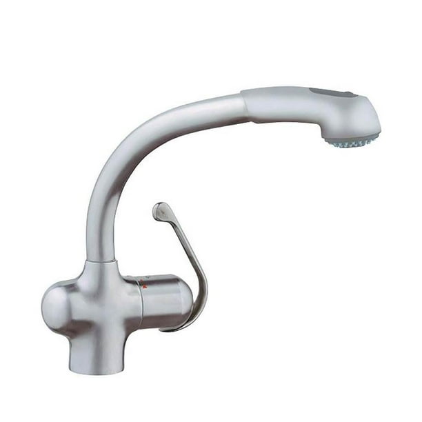 Grohe Eurodisc Single-Handle Pull-Out Kitchen Faucet Confident and versatile, the Eurodisc single-lever kitchen faucet complements a variety of kitchens in both look and functionality. At 7-3/16 in. in height, it ...Handle Type: LeverNumber of Handles: 1Finish Type: ChromeSpout Height: 5.25 Inches Rating: 4,2 · 271 reviews