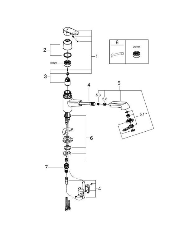 Grohe 33 933 Europlus Replacement Parts - Faucet Shark Grohe 33 933 Europlus Single-Lever Sink Mixer Replacement Parts. Pos. Description: Part Number: 1: Lever: 46415000: 2: Cap: 46427000: 3: Cartridge: 46048000: 4