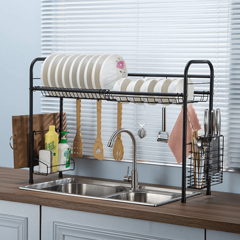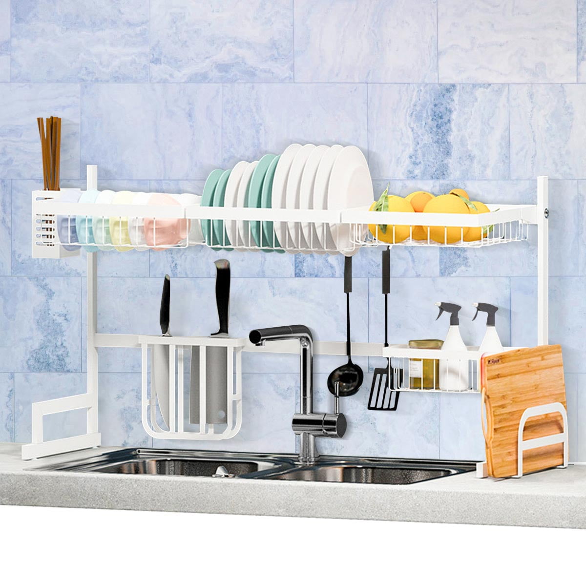 Over Sink Dish Drying Rack Drainer Shelf Stainless Steel ... Red 2-Tier Dish Drying Rack Stainless Steel Drainer Kitchen Storage. Item: 2 Tier Drainer Rack. With this above sink dish drying rack, dishes will dry faster, and you'll have more counter space. Himimi Over The Sink Dish Drying Rack, 2-Tier Dish Drainers for Kitchen Counter Expandable.