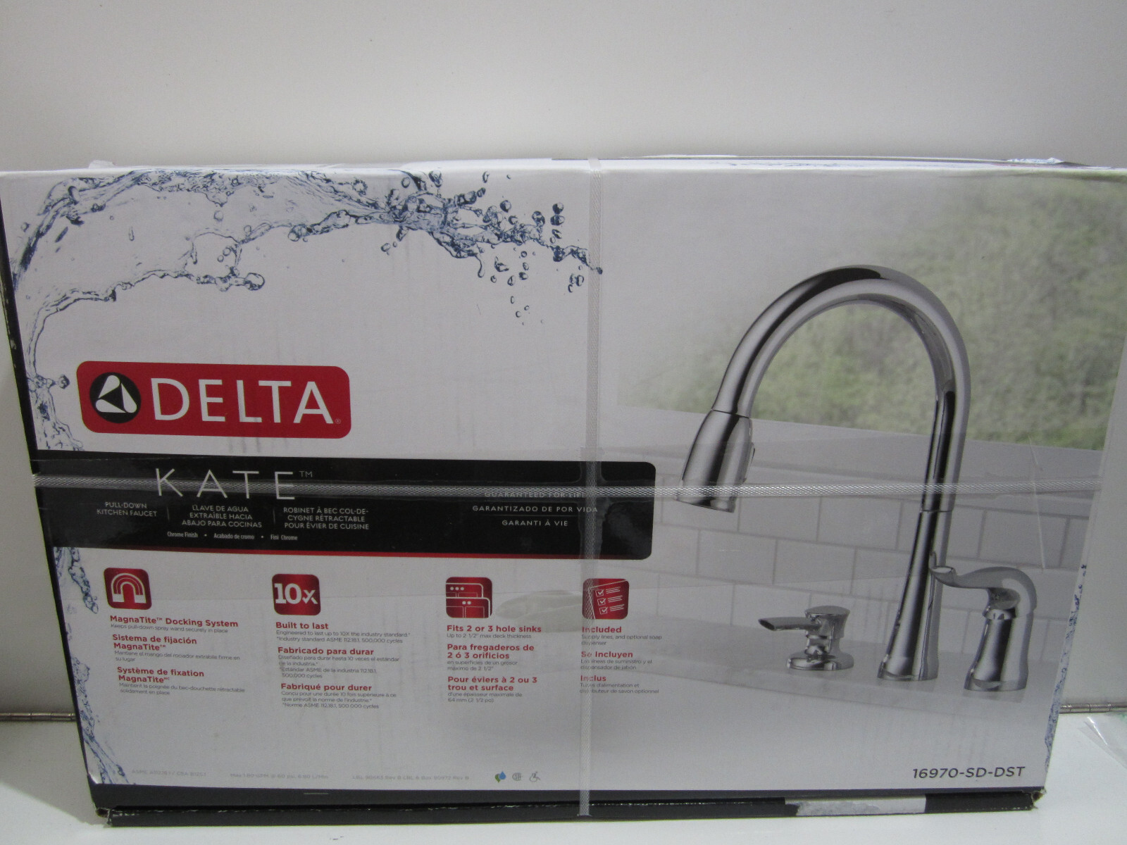 Delta Faucet Kate Pull Down Kitchen Faucet Chrome, Chrome Kitchen ... Delta Faucet : Part Number 16970-SD-DST : Item Weight 7.7 pounds : Product Dimensions 20 x 13 x 4 inches : Country of Origin USA : Item model number 16970-SD-DST : Is Discontinued By Manufacturer No : Size 4.00 x 13.00 x 20.00 inches : Color Chrome : Style Pull Down Faucet : Finish Chrome : Material