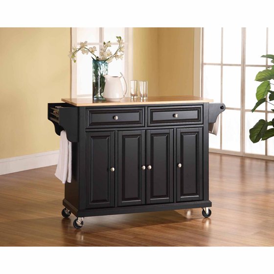 Crosley Furniture Kitchen Cart - Kohl's Look no further than this Crosley Furniture kitchen cart. PRODUCT FEATURES Two drawers provide storage. Cabinets with adjustable shelving offer additional room. Built-in towel and spice racks keep essentials in reach. Locking caster wheels ensure easy mobility. Natural top provides an appealing meal preparation surface. PRODUCT DETAILS