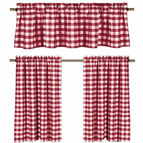 36"x54" Parkham Farmhouse Plaid Rod Pocket Semi-Sheer Kitchen Curtain Valance and Tiers Set Red/White - No. 918