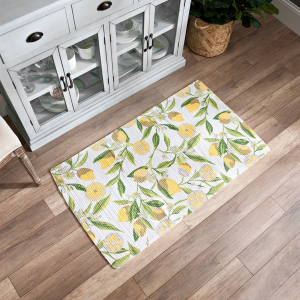Kitchen Mats & Rugs You'll Love in 2022 - Wayfair Made of PVC foam to relieve tired muscles and joints, this stain-resistant kitchen mat showcases clusters of vibrant yellow lemons and green lemon leaves. Measuring 20" W x 39" L overall, this mat is finished with a non-skid embossed rubber backing to keep it from shifting and sliding.