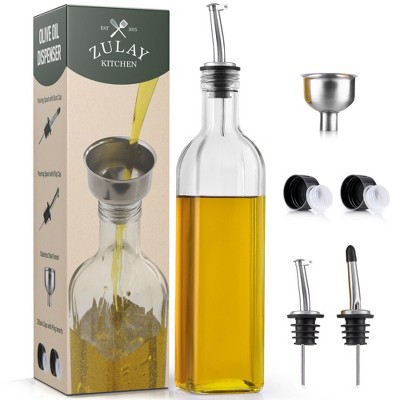 Zulay (17oz) Olive Oil Dispenser Bottle For Kitchen - Glass Olive Oil Bottle With 2 Spouts, 2 Removable Corks, 2 Caps, & 1 Funnel - Oil Bottle For ...