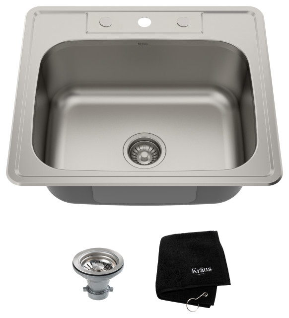 Colony® 25 x 22-Inch Stainless Steel 4-Hole Topmount Single-Bowl ... Colony® 25 x 22-Inch Stainless Steel 4-Hole Topmount Single-Bowl Kitchen Sink. List Price: Buy Now Price: List Price: ... Durable 20-gauge stainless steel; Convenient top mount installation; 25 x 22 x 8-inch single-bowl sink; Includes 9028000.075 drain; Installation hardware, cutout template and instructions included ...