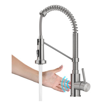 Touchless Kitchen Faucet, Two-Sensor Stainless Steel Touch Free Kitchen Sink Faucets with Dual Function Pull Down Spray Head, Motion Sense Hand Free ...