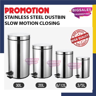 Tong Sampah Dustbin kitchen 5L 8L 12L 20L Rubbish Bin Large Capacity Stainless Steel Trash Pedal Garbage Bin